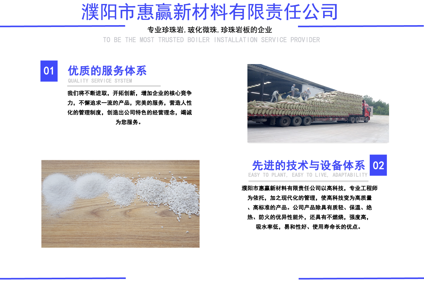 珍珠巖,玻化微珠,玻化微珠保溫砂漿, 珍珠巖板,憎水珍珠巖,憎水型珍珠巖, 憎水型膨脹珍珠巖, 膨脹珍珠巖,珠光砂-濮陽(yáng)市惠贏新材料有限責(zé)任公司 公司簡(jiǎn)介/ ABOUT